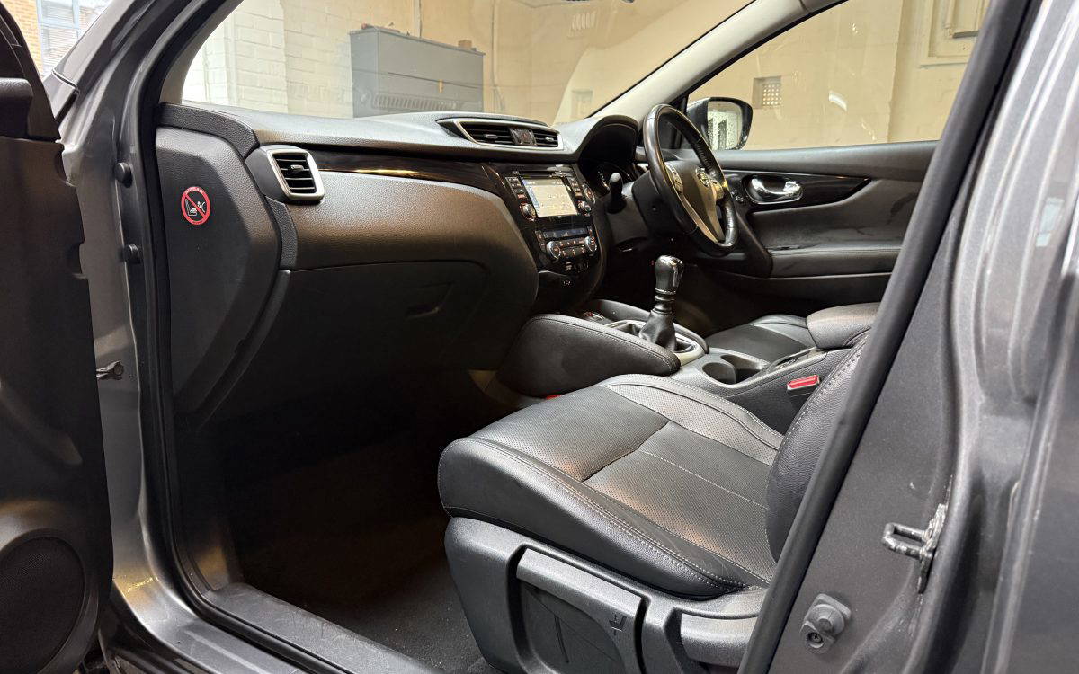EXCELLENT CONDITION NISSAN QASHQAI HIGH SPEC 5DR, HPI CLEAR, VEHICLE SPEC INCLUDES 19INCH ALLOYS, FULL LEATHER, GLASS PANORAMIC ROOF, CRUISE CONTROL, HEATED SEATS, AIR CON, DUAL ZONE CLIMATE CONTROL, PRIVACY GLASS, ROOF RAILS, MULTI FUNCTION STEERING WHEEL, SA TNAV, TOUCHSCREEN DISPLAY, BLUETOOTH, FRONT AND REAR PARKING SENSORS WITH 360 DEGREE CAMERA, AUTO DIMMING MIRRORS, POWER FOLDING DOOR MIRRORS, HEATED WINDSCREEN, LED DAYTIME RUNNING LIGHTS, INTERIOR AMBIENT LIGHTING, STOP/START BUTTON, KEYLESS ENTRY, AUTO LIGHTS, FROMT FOGS, DAB RADIO, HILL START ASSIST, 2 KEYS, ALL HANDBOOKS, NEW TIMING BELT & WATER PUMP FITTED JAN 24 AT 60K MILES, 12 MONTHS MOT AND SERVICE INCLUDED WITH SALE, FULL HISTORY, AMAZING RUNNING COSTS WITH ONLY £20 FOR ONE YEARS ROAD TAX AND DOES OVER 65MPG!!!, 3 OWNERS FROM NEW, LOCAL LADY OWNER, LOVELY CONDITION THROUGHOUT, LOVELY CONDITION THROUGHOUT, INTERIOR SEATS IMMACULATE, ***ASK FOR FINANCE QUOTE APR FROM 9.4%*** WARRANTY INCLUDED, PART X WELCOME, VIEW BY APPOINTMENT AND CALL 0161-937-2202 / 07969-562-695 Indoor Showroom located Altrincham, Hale, Cheshire family business! Please read our 5 star reviews on google and Autotrader!
