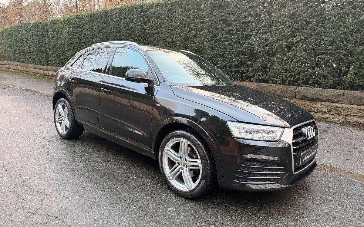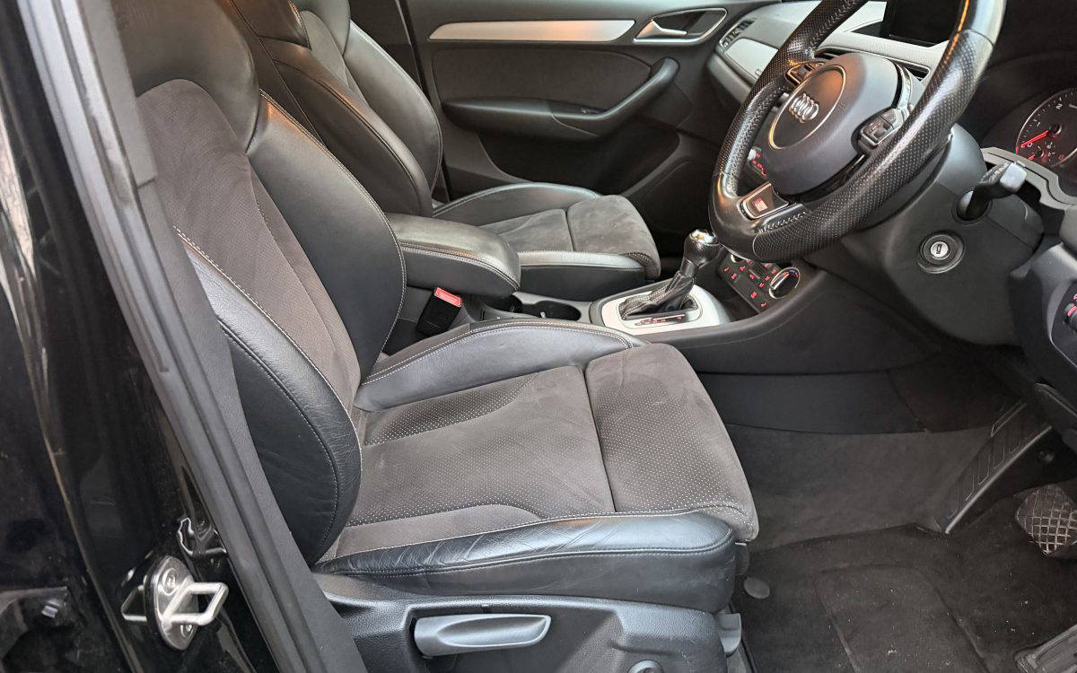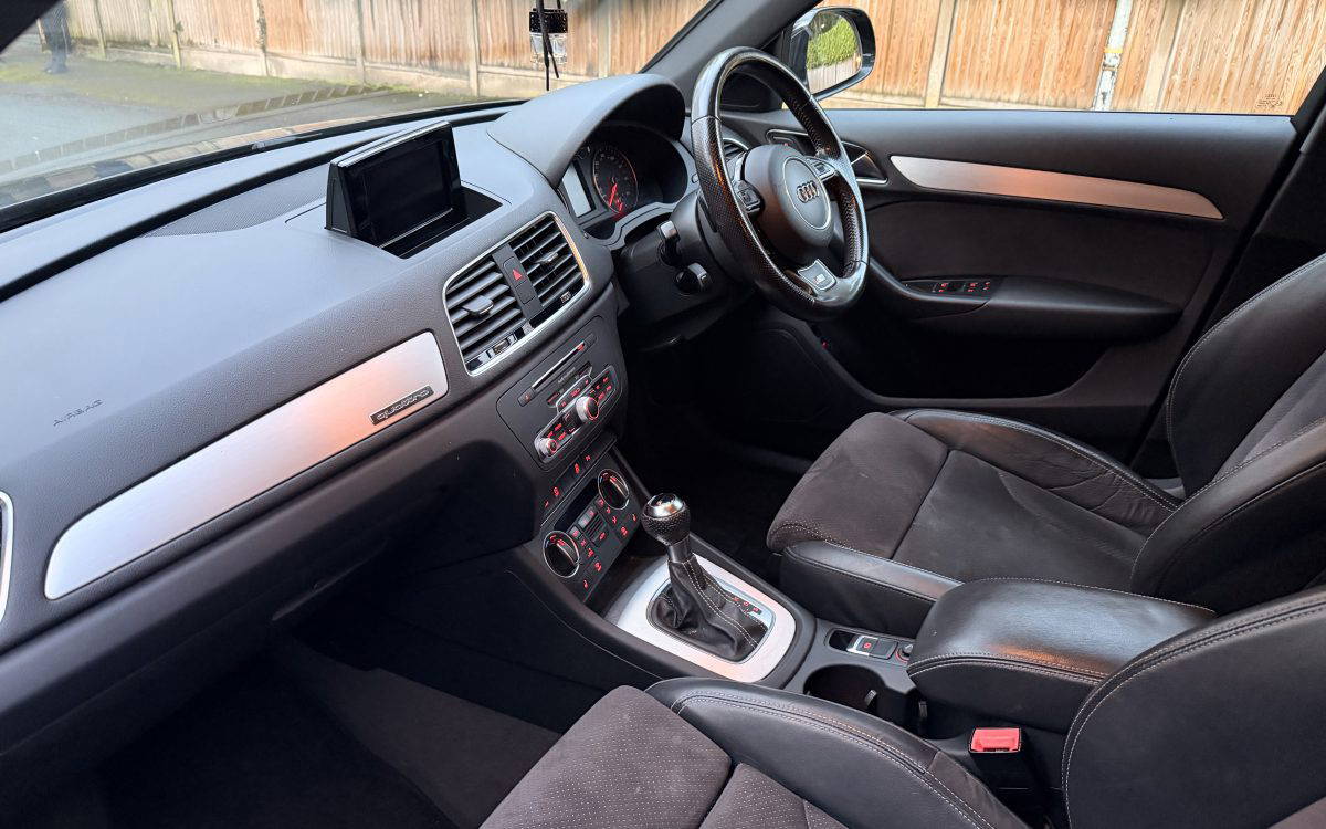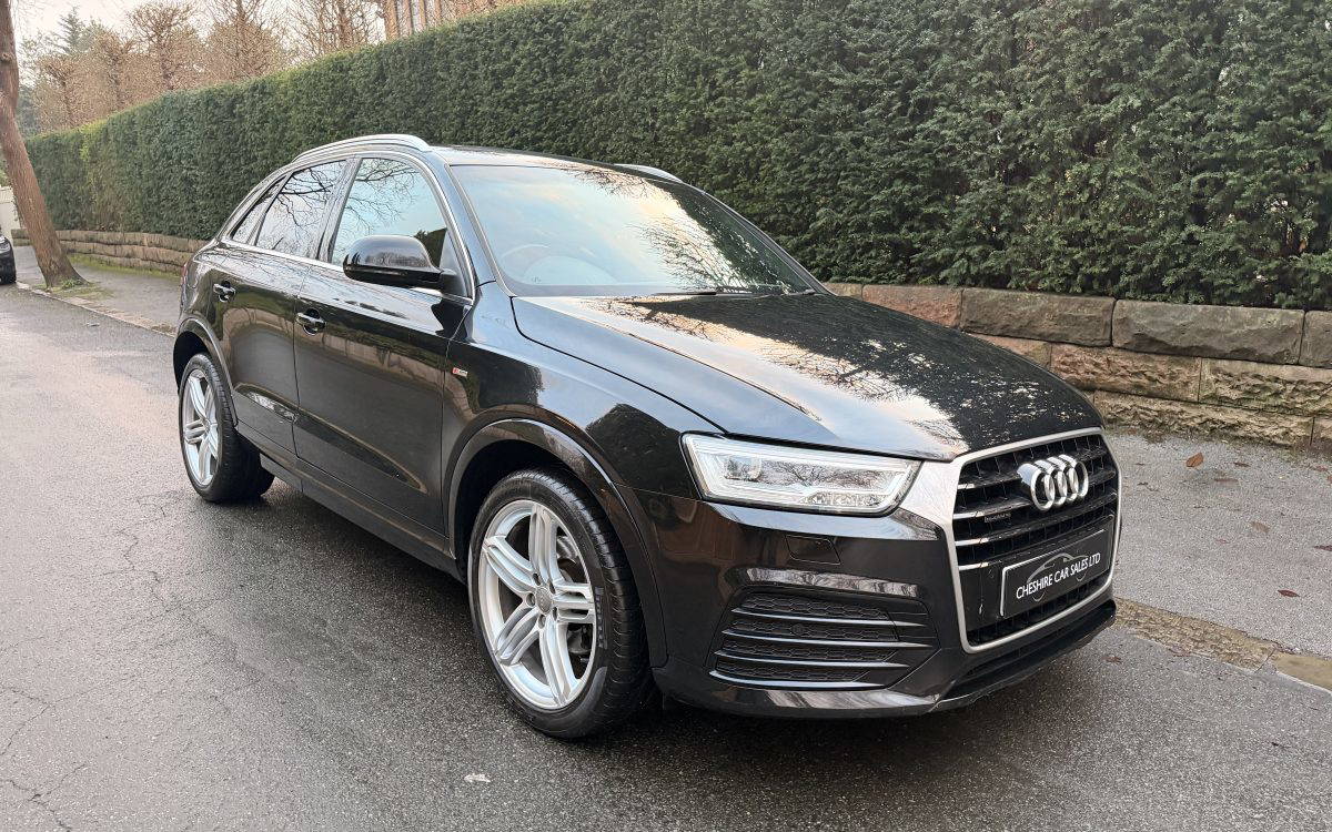 Superb Example of Q3 boasting lots of factory fitted options, Metallic Black Paintwork with Black 1/2 Leather S-Line Seats with Alcantara Seat Inserts, Options as follows Heated Front Seats, Sat Nav, Power folding Heated, Dimming Door Mirrors, Unmarked 19″ Alloy Wheels. Electric Tailgate, Cruise Control Remote Central Locking, Bluetooth, Automatic Headlights, Privacy Glass, Front and Rear Parking Sensors, Euro 6, New 12 month Mot, very good service history, 2 Keys, Low rate Finance options available from 9.4% Apr, WARRANTY INCLUDED, PART X WELCOME, VIEW BY APPOINTMENT AND CALL 0161-937-2202 / 07795-226677 Indoor Showroom located Altrincham, Hale, Cheshire family business! Please read our 5 star reviews on google and Autotrader!