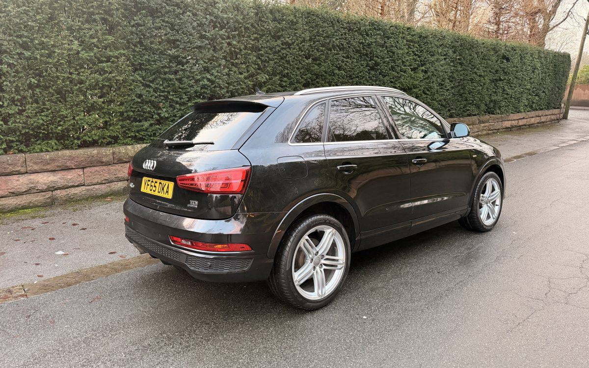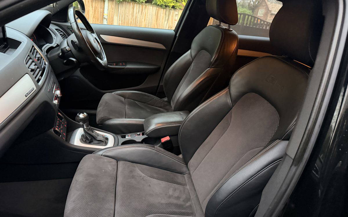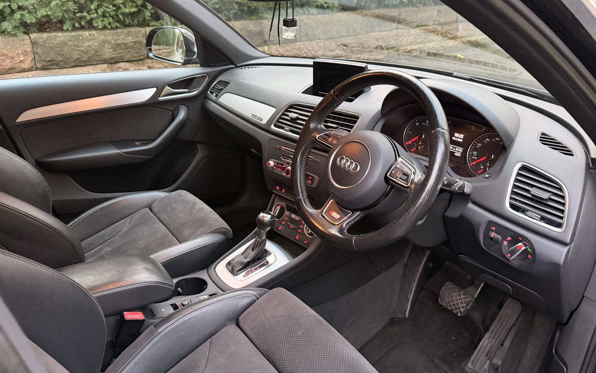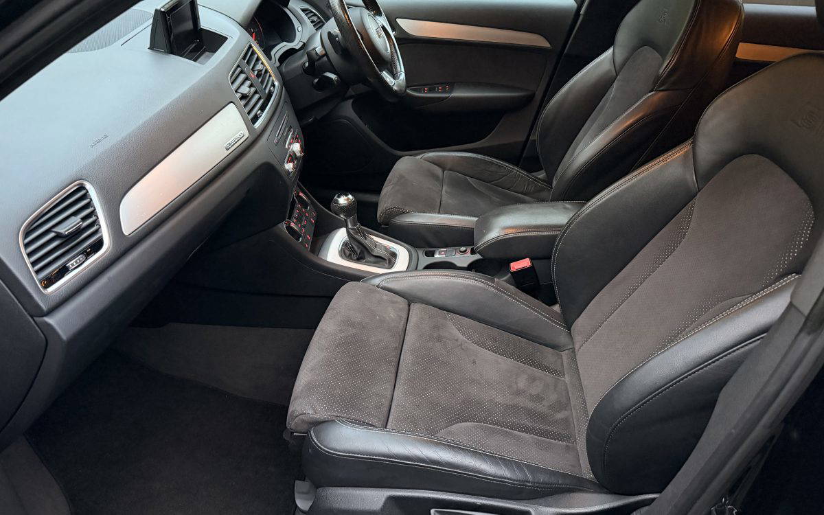 Superb Example of Q3 boasting lots of factory fitted options, Metallic Black Paintwork with Black 1/2 Leather S-Line Seats with Alcantara Seat Inserts, Options as follows Heated Front Seats, Sat Nav, Power folding Heated, Dimming Door Mirrors, Unmarked 19″ Alloy Wheels. Electric Tailgate, Cruise Control Remote Central Locking, Bluetooth, Automatic Headlights, Privacy Glass, Front and Rear Parking Sensors, Euro 6, New 12 month Mot, very good service history, 2 Keys, Low rate Finance options available from 9.4% Apr, WARRANTY INCLUDED, PART X WELCOME, VIEW BY APPOINTMENT AND CALL 0161-937-2202 / 07795-226677 Indoor Showroom located Altrincham, Hale, Cheshire family business! Please read our 5 star reviews on google and Autotrader!