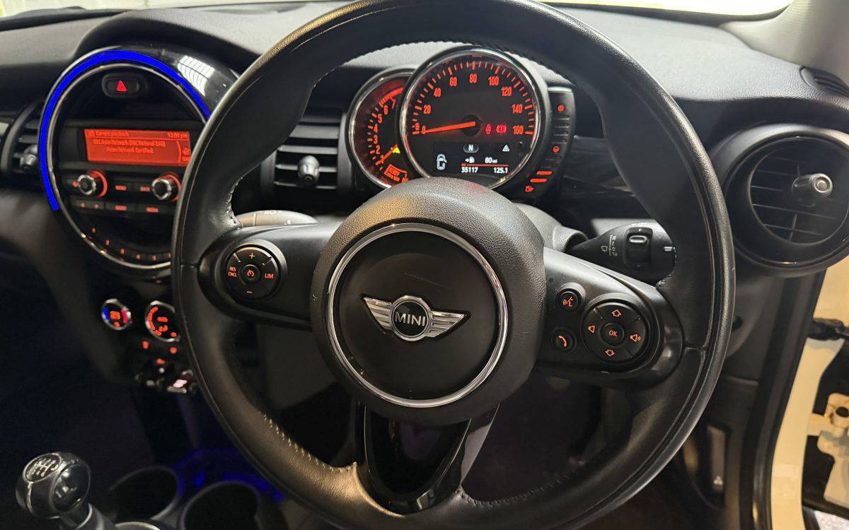 EXCELLENT CONDITION MINI COOPER PETROL EURO 6 ULEZ COMPLIANT, HPI CLEAR, VEHICLE HAS LOTS OF ADDTIONAL SUCH AS CHILLI PACK, 17INCH BLACK ALLOYS, LED HEDLIGHTS WITH RUNNING LIGHTS, DUAL ZONE CLIMATE CONTROL, LEATHER SPORTS MULTI FUNCTION STEERING WHEEL, PRIVACY GLASS, MINI DRIVING MODES, PIANO BLACK TRIM, MINI EXCITMENT PACK, STORAGE COMPARTMENT, INTERIOR LIGHT PACK, RAIN SENSE WIPERS, CRUISE CONTROL, FRONT FOGS, ROOF AND MIRROR CAPS IN BLACK, HALF LEATHER CARBON SEATS, BLUETOOTH, 2 KEYS, ALL HANDBOOKS, FULL DOCUMENTED SERVICE HISTORY, LAST SERVICED AT 34K MILES WITH NEW FRONT BREAK DISKS AND PADS WITH FULL RECEIPT, LOCAL LADY OWNER, ONLY £20 FOR TWELVE MONTHS ROAD TAX, SUPERN CONDITION THROUGHOUT, ASK FOR FINANCE QUOTE – Low rate Finance options available from 9.4% Apr, WARRANTY INCLUDED, PART X WELCOME, VIEW BY APPOINTMENT AND CALL 0161-937-2202 / 07969-562-695 Indoor Showroom located Altrincham, Hale, Cheshire family business! Please read our 5 star reviews on google and Autotrader!